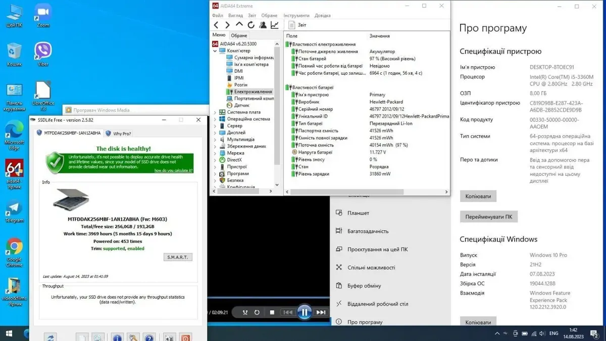 - Комплектація: ноутбук, зарядний пристрій, наклейки на клавіатуру