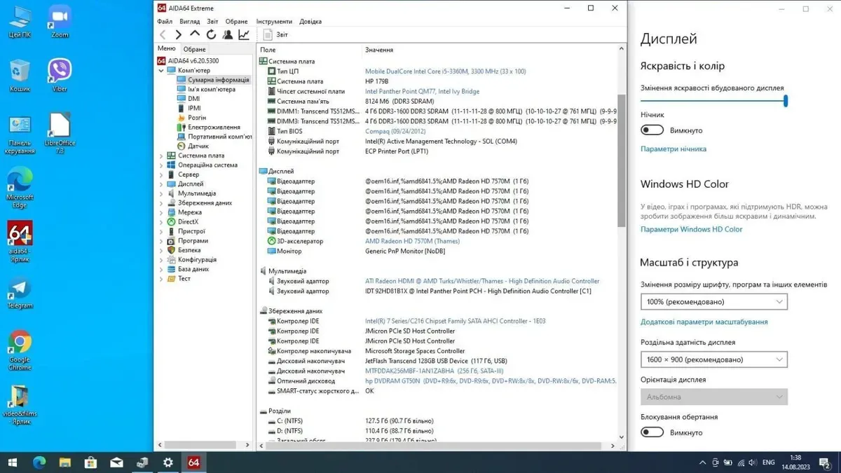 Ноутбук HP EliteBook 8470p з екраном 14" (1600x900) TN на базі процесора Intel Core i5-3360M та оперативною пам'яттю 8 GB DDR3 для роботи та домашніх завдань