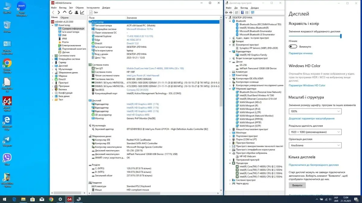 - Процесор: Intel Core i7-4600U (2 (4) ядра з тактовою частотою 2,1–3,3 ГГц), 3 МБ Smart Cache