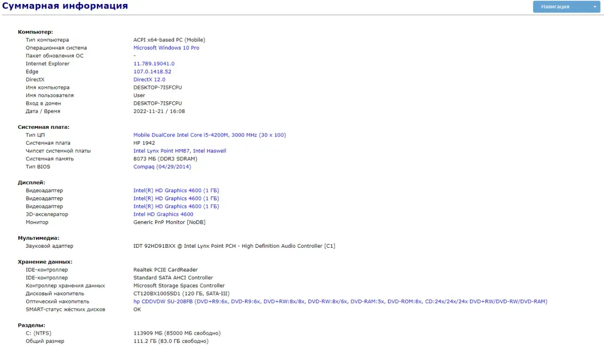 - Графіка: інтегрована Intel HD Graphics 4600 (до 1792 MB з ОЗП)