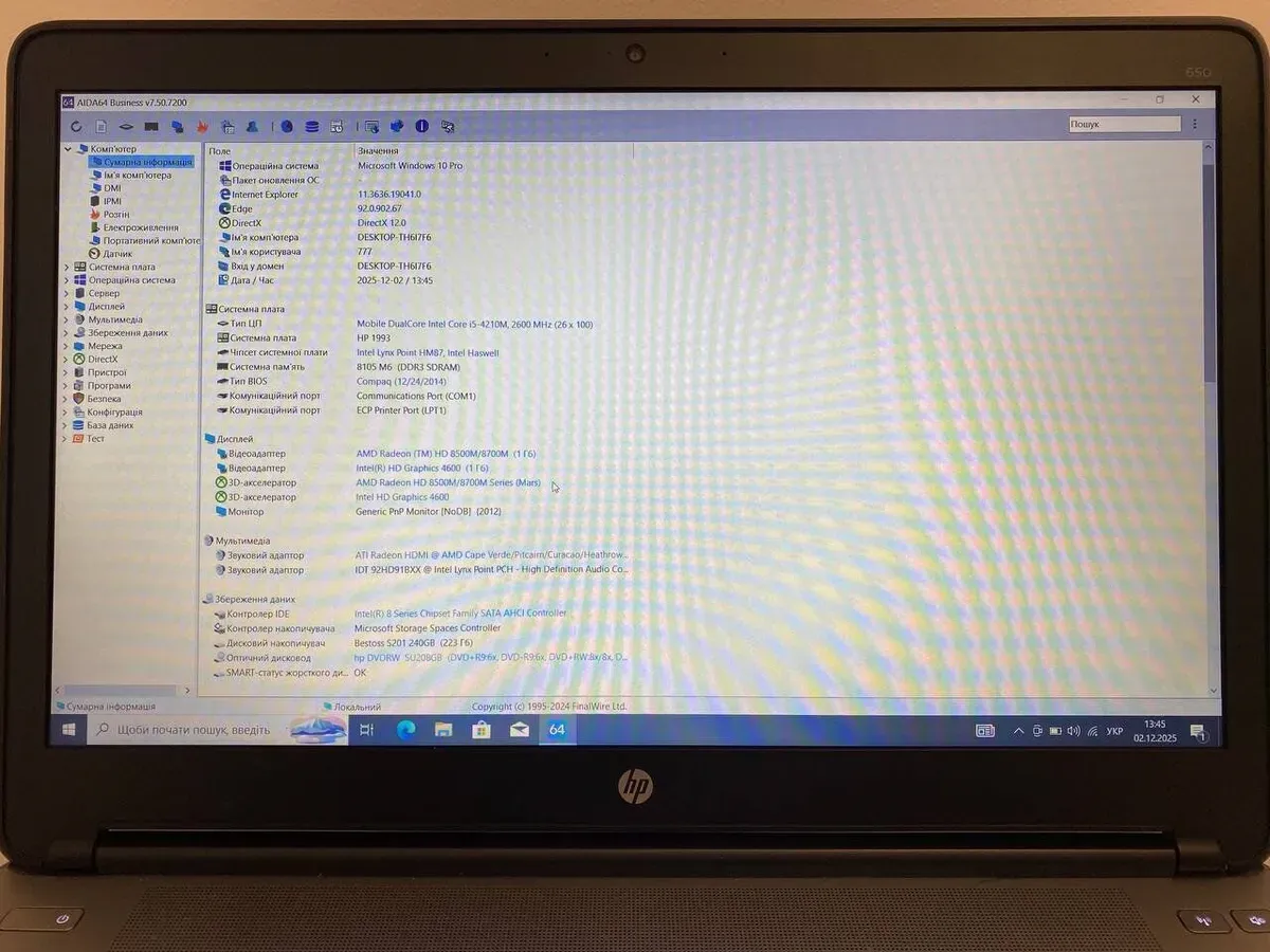 Ноутбук HP ProBook 650 G1 з екраном 15,6" (1920x1080) TN на базі процесора Intel Core i5-4210M і дискретною відеокартою AMD Radeon HD 8770M 2 GB для офісної роботи та мультимедіа