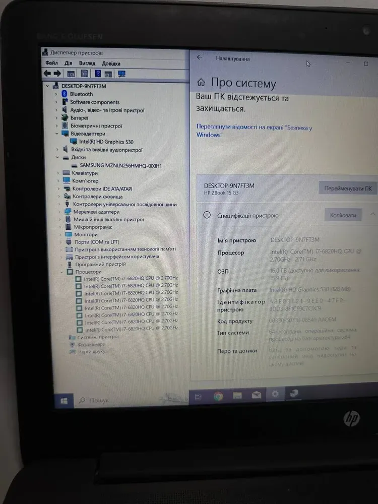 - Процесор: Intel Core i7-6820HQ (4 (8) ядра по 2.7 - 3.6 GHz), 8 MB Smart Cache
