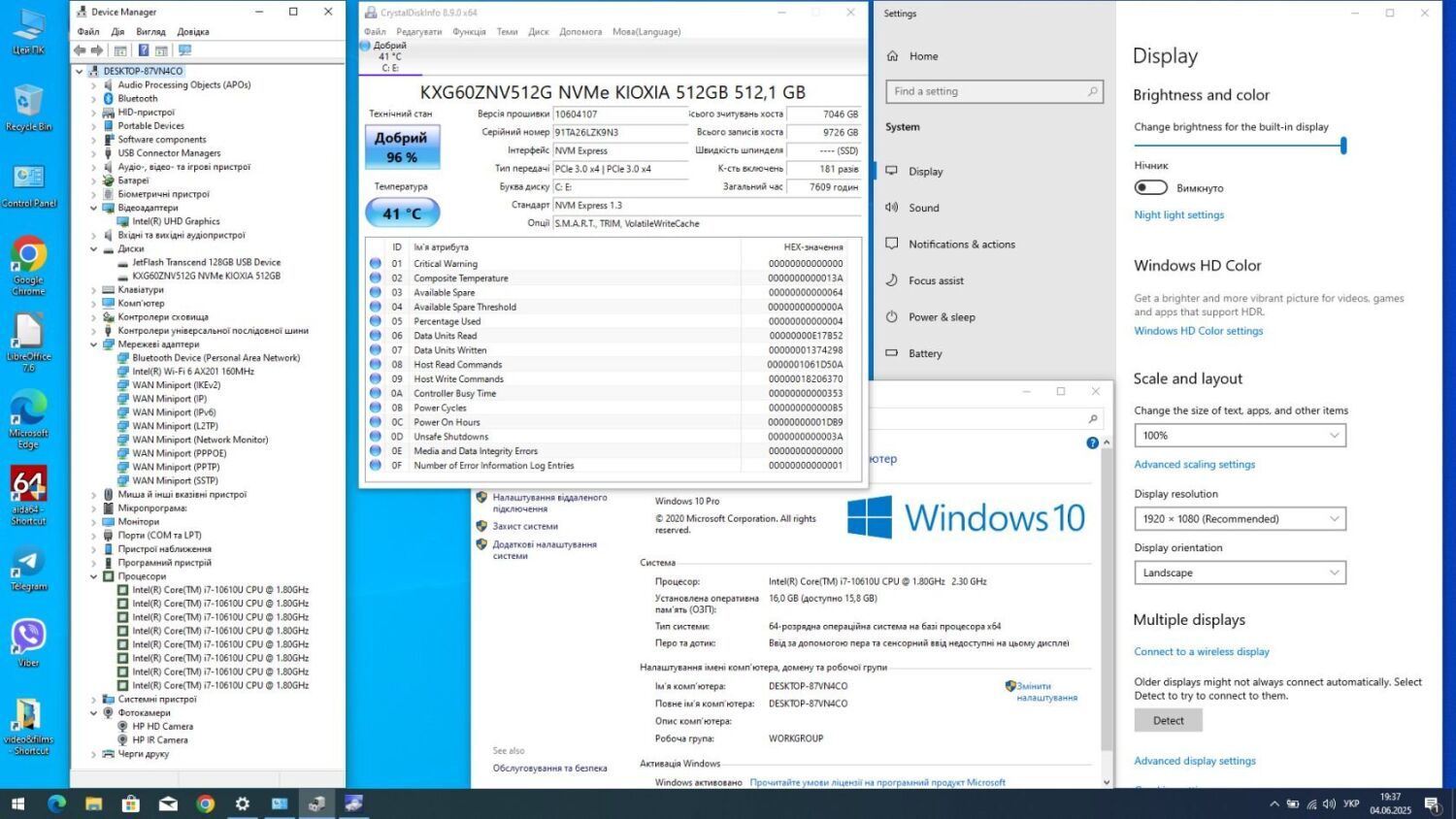 - Процесор: Intel Core i7-10610U (4 (8) ядра по 1,8 - 4,9 ГГц), 8 МБ Smart Cache