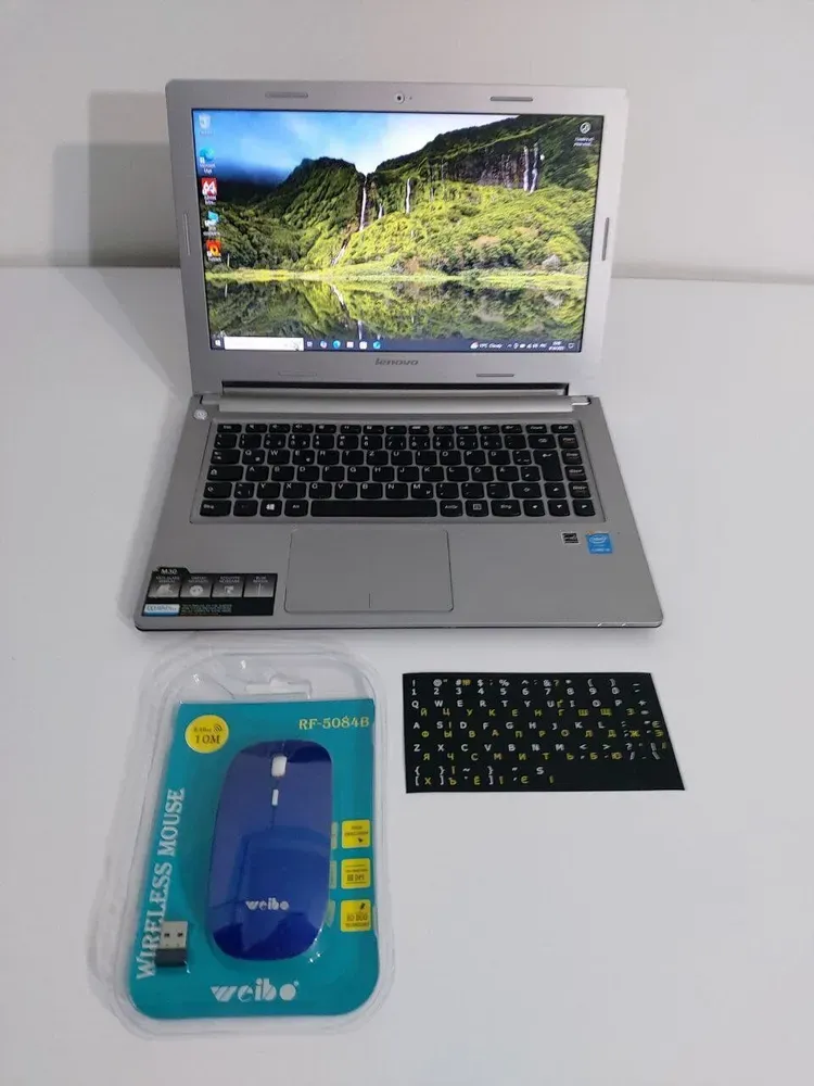- Комплектація: ноутбук, зарядний пристрій, наклейки на клавіатуру