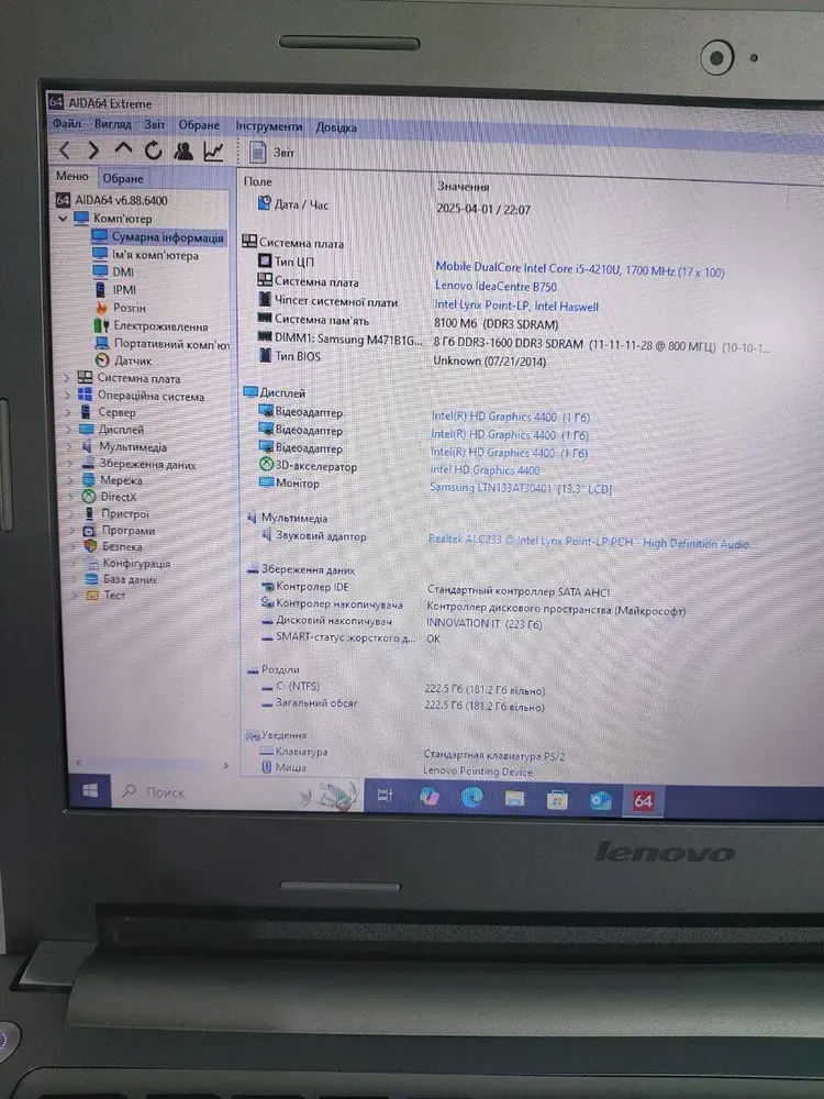 - Графіка: інтегрована Intel HD Graphics 4400 (до 1792 MB із ОЗП)