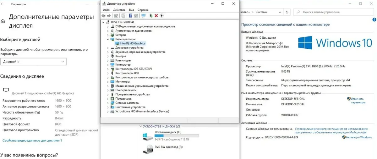 Процесор:Intel Pentium B960