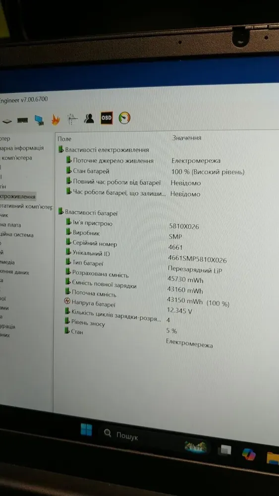 - Батарея: щонайменше 4-6 годин у режимі звичайного навантаження, знос 5%