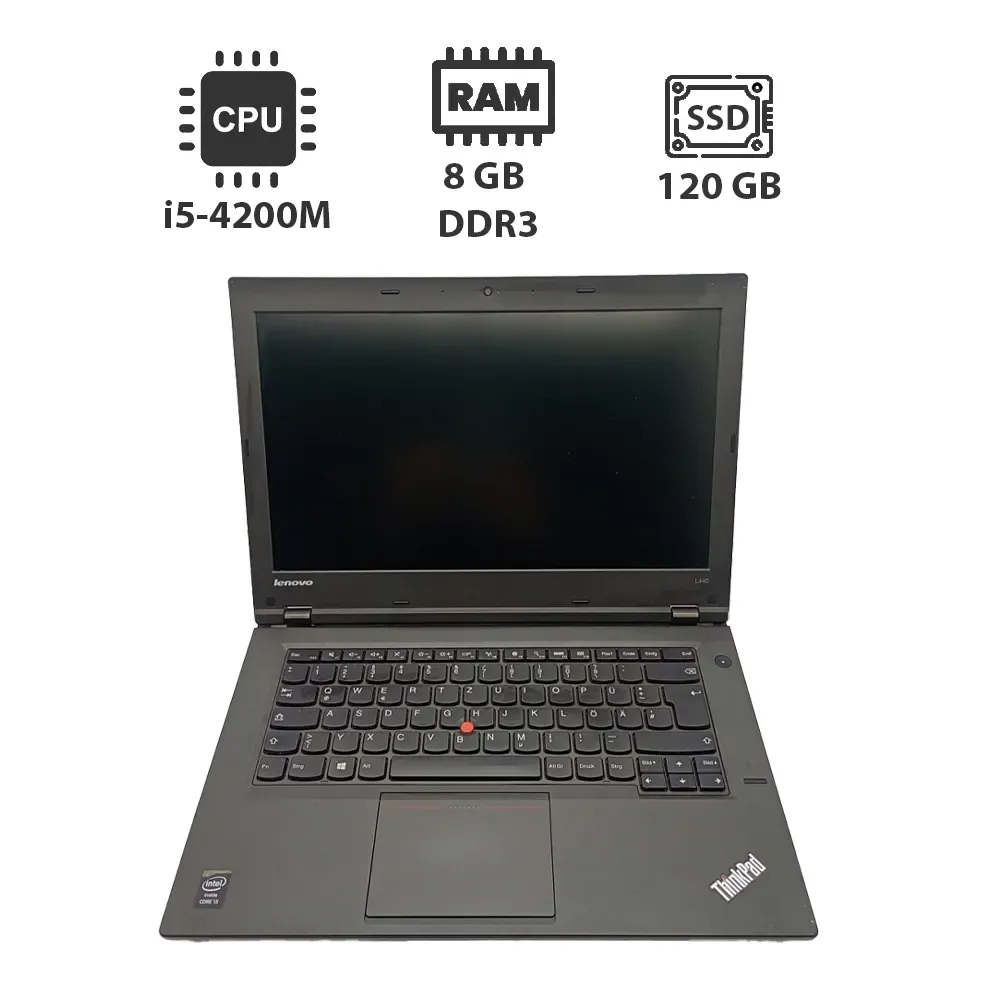 Ноутбук Lenovo ThinkPad L440 з екраном 14" (1600x900) TN на базі процесора Intel Core i5-4200M і оперативною пам'яттю 8 GB DDR3 для офісної роботи та навчання
