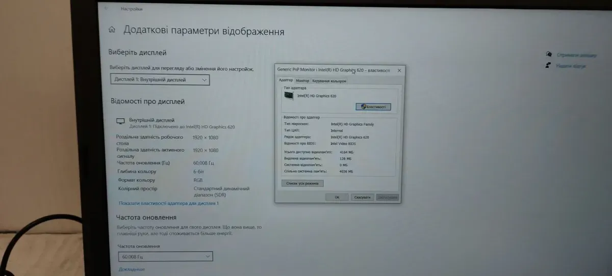 Інтегрована відеокарта:HD Graphics 620