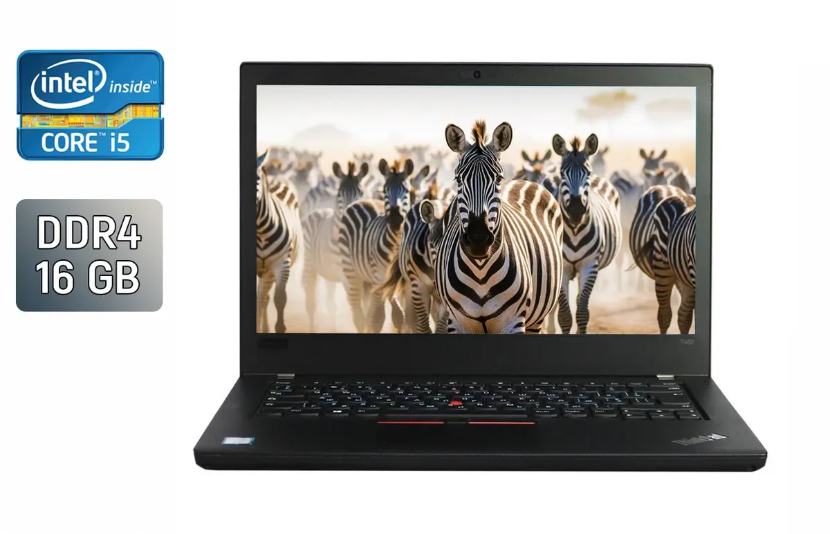 Ноутбук Lenovo ThinkPad T480 з екраном 14" (1920x1080) IPS на базі процесора Intel Core i5-8350U та оперативною пам'яттю 16 GB DDR4 для офісної роботи та мультимедіа