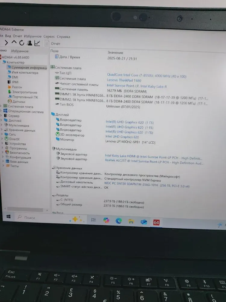 - Оперативна пам'ять: 16 ГБ DDR4 (2x 8 ГБ) 2400 МГц Hynix
