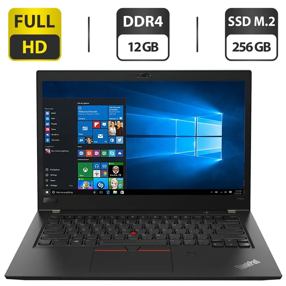 Ноутбук Lenovo ThinkPad T480s з екраном 14" (1920x1080) TN на базі процесора Intel Core i5-8250U і оперативної пам'яті 12 GB DDR4 для офісної роботи і домашніх завдань