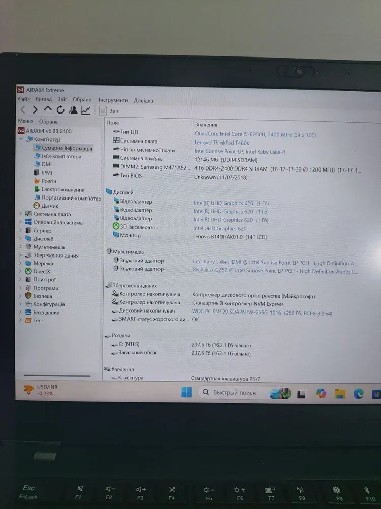 - Графіка: інтегрована Intel UHD Graphics 620 (до 1792 МБ з ОЗУ)