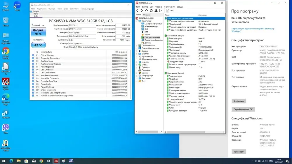 - Комплектація: ноутбук, зарядний пристрій, наклейки на клавіатуру