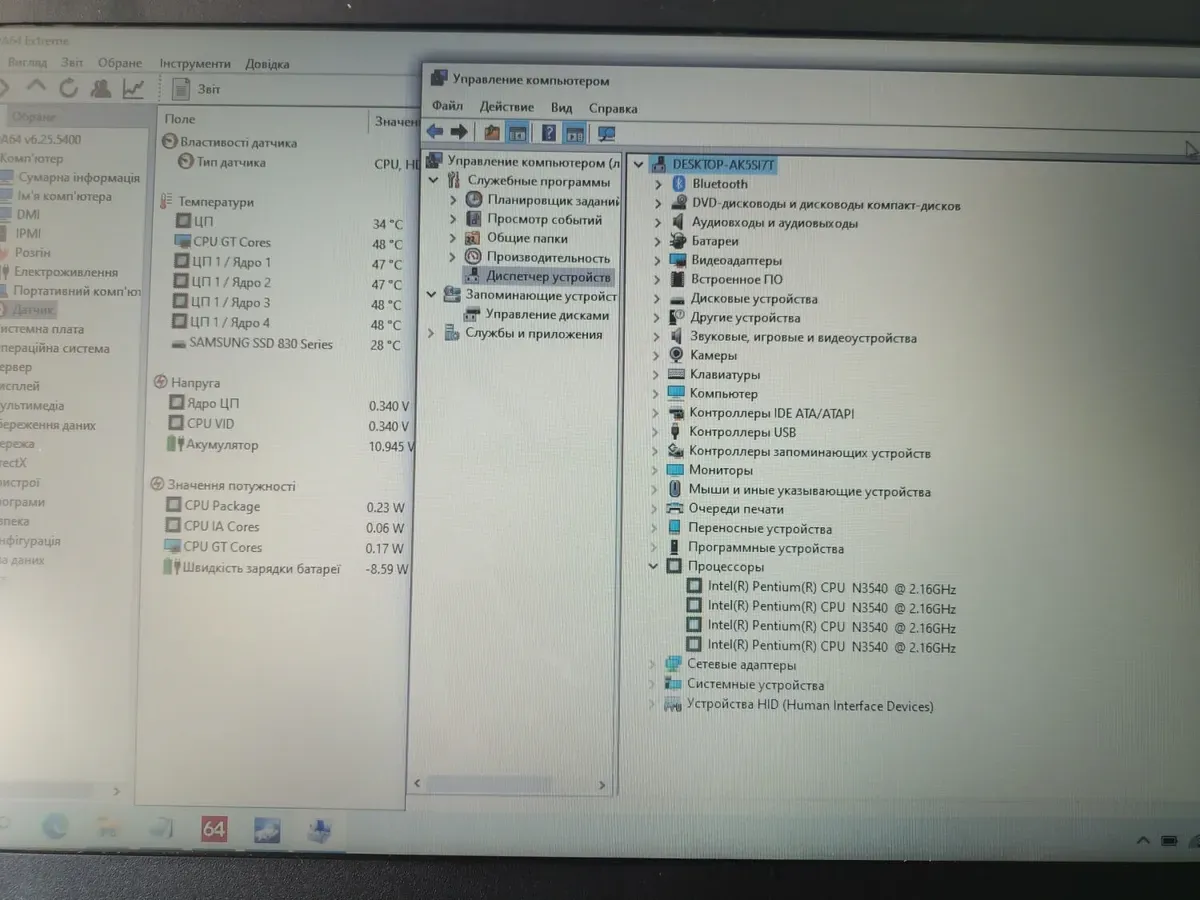 - Процесор: Intel Pentium N3540 (4 ядра по 2.16 - 2.66 GHz), 2 MB Smart Cache