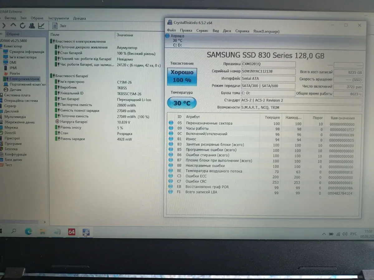 - Комплектація: ноутбук, зарядний пристрій, наклейки на клавіатуру