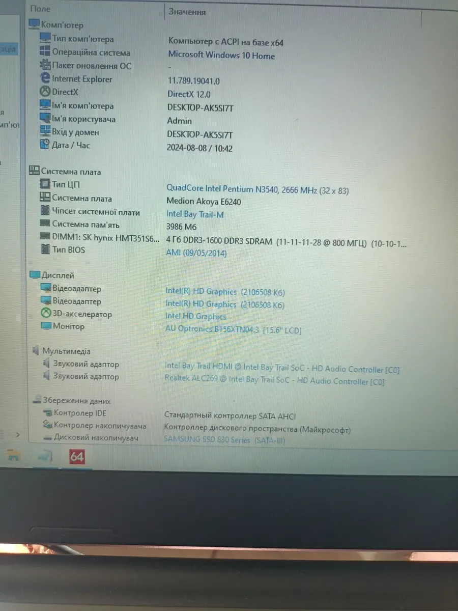 Ноутбук Medion Akoya E6240 з екраном 15.6" (1366x768) TN на базі процесора Intel Pentium N3540 і оперативною пам'яттю 4 GB DDR3 для офісної роботи і домашніх завдань