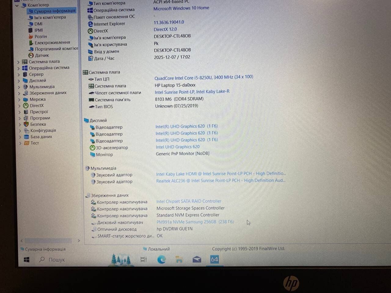 - Графіка: інтегрована Intel UHD Graphics 620 (до 1792 МБ з ОЗУ)