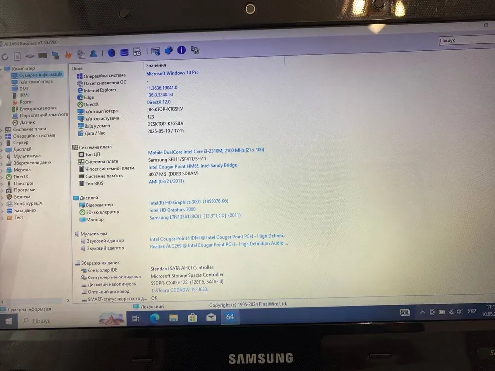 - Модель: Samsung NP-SF311