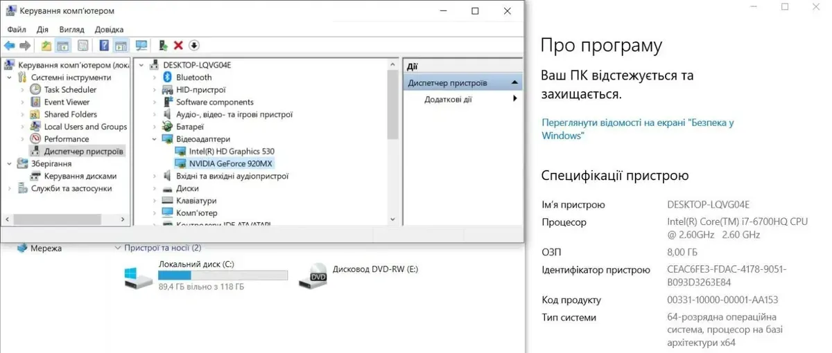 - Графіка: дискретна nVidia GeForce 920MX, 2 GB GDDR5, 64-bit