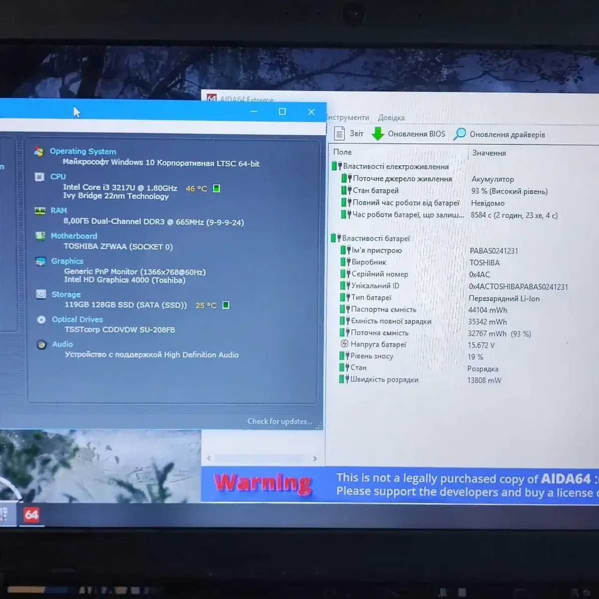 - Процесор: Intel Core i3-3217U (2(4) ядра по 1.8 GHz), 3 MB Smart Cache