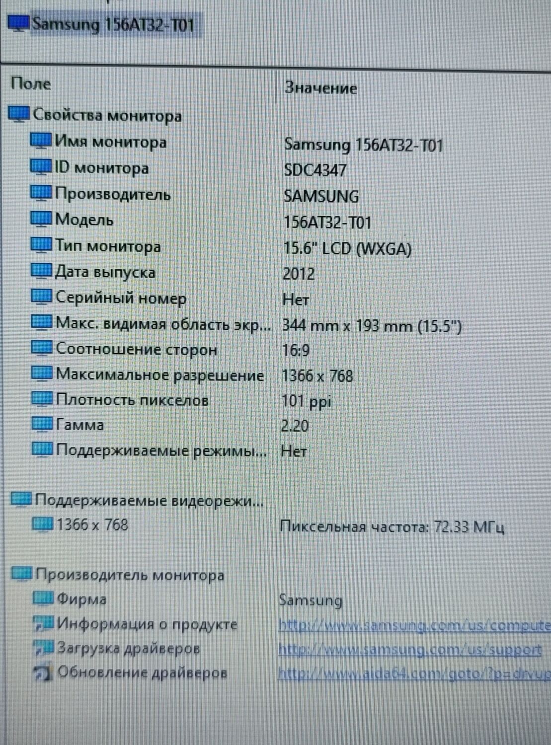 - Екран (діагональ, роздільна здатність, тип матриці): 15,6" (1366x768) TN