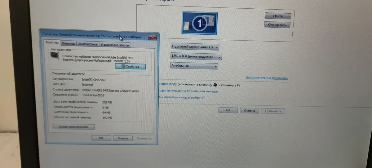 Інтегрована відеокарта:Intel GMA 950