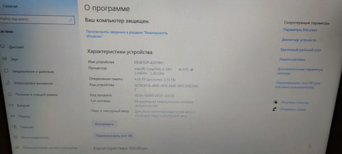 - Процесор: Intel Core i3-370M (2 (4) ядра по 2.4 GHz), 3 MB Smart Cache