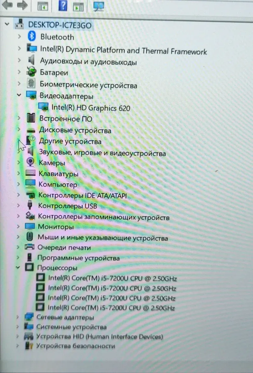 - Процесор: Intel Core i5-7200U (2 (4) ядра з тактовою частотою 2,5–3,1 ГГц), 3 МБ Smart Cache