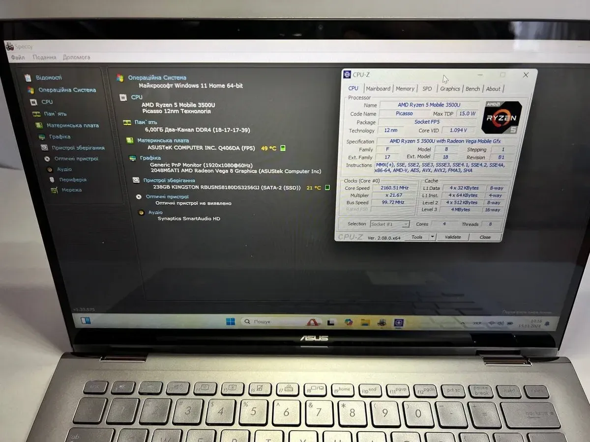 - Процесор: AMD Ryzen 5 3500U (4 (8) ядра по 2.1 - 3.7 GHz), 4 MB Cache