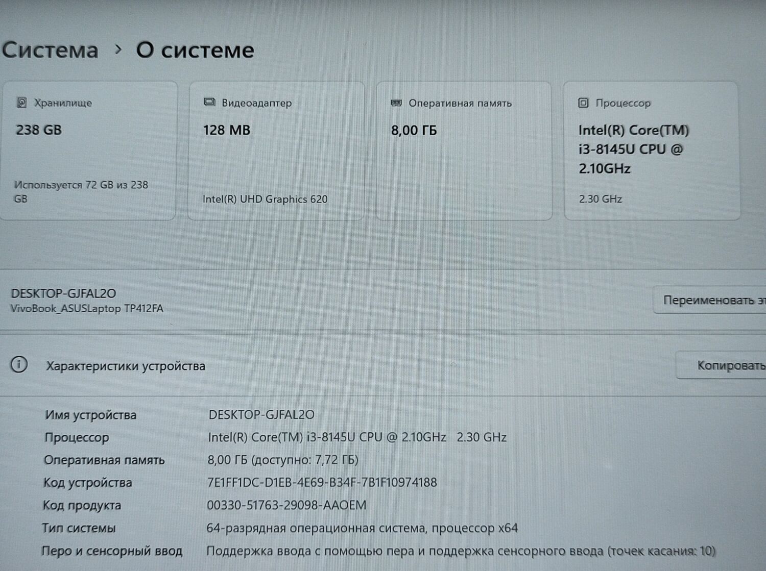 - Модель: Asus Vivobook TP412FA 2-в-1