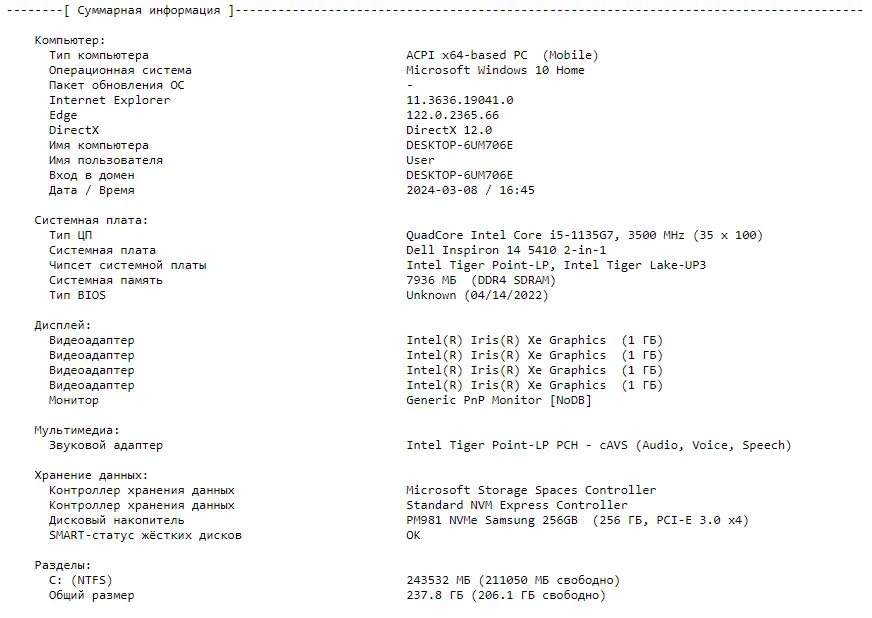 - Модель: Dell Inspiron 14 5410 2-in-1