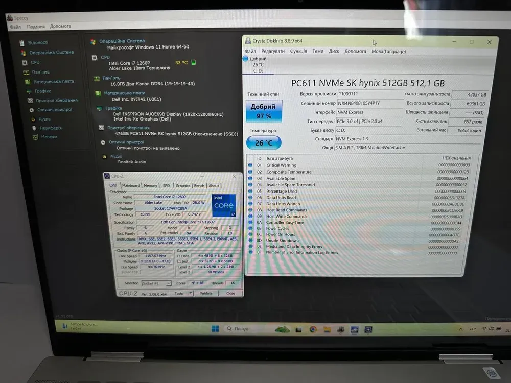 - Процесор: Intel Core i7-1280P (14 (20) ядер по 1.3 - 4.8 GHz), 24 MB Smart Cache