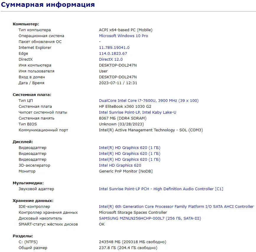 - Процесор: Intel Core i7-7600U (2 (4) ядра по 2.8 - 3.9 GHz), 4 MB Smart Cache