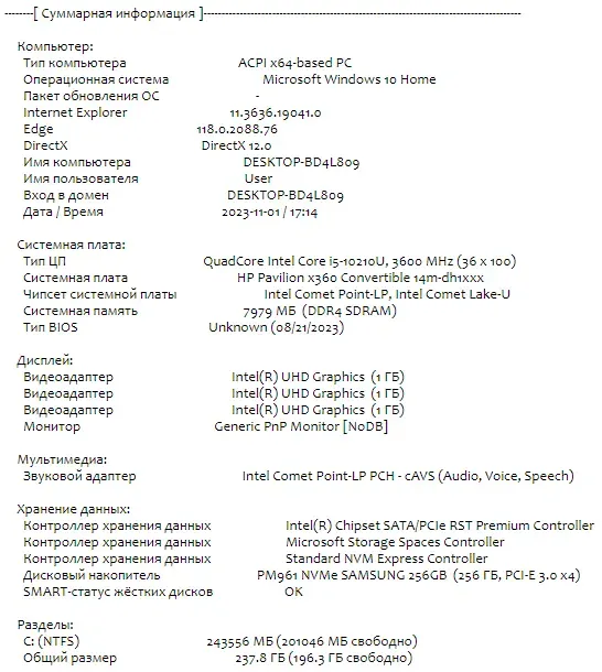 - Модель: HP Pavilion x360 Convertible 14m-dh1