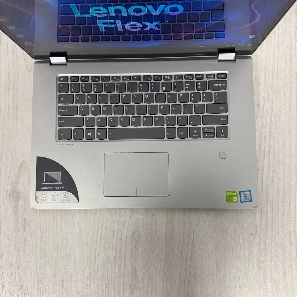 Ноутбук-трансформер Б-клас Lenovo Flex 5-1570 / 15.6" (1920x1080) IPS Touch / Intel Core i5-8250U (4 (8) ядра по 1.6 - 3.4 GHz) / 8 GB DDR4 / 256 GB SSD NVMe / nVidia GeForce MX130, 2 GB GDDR5, 64-bit / WebCam б/в