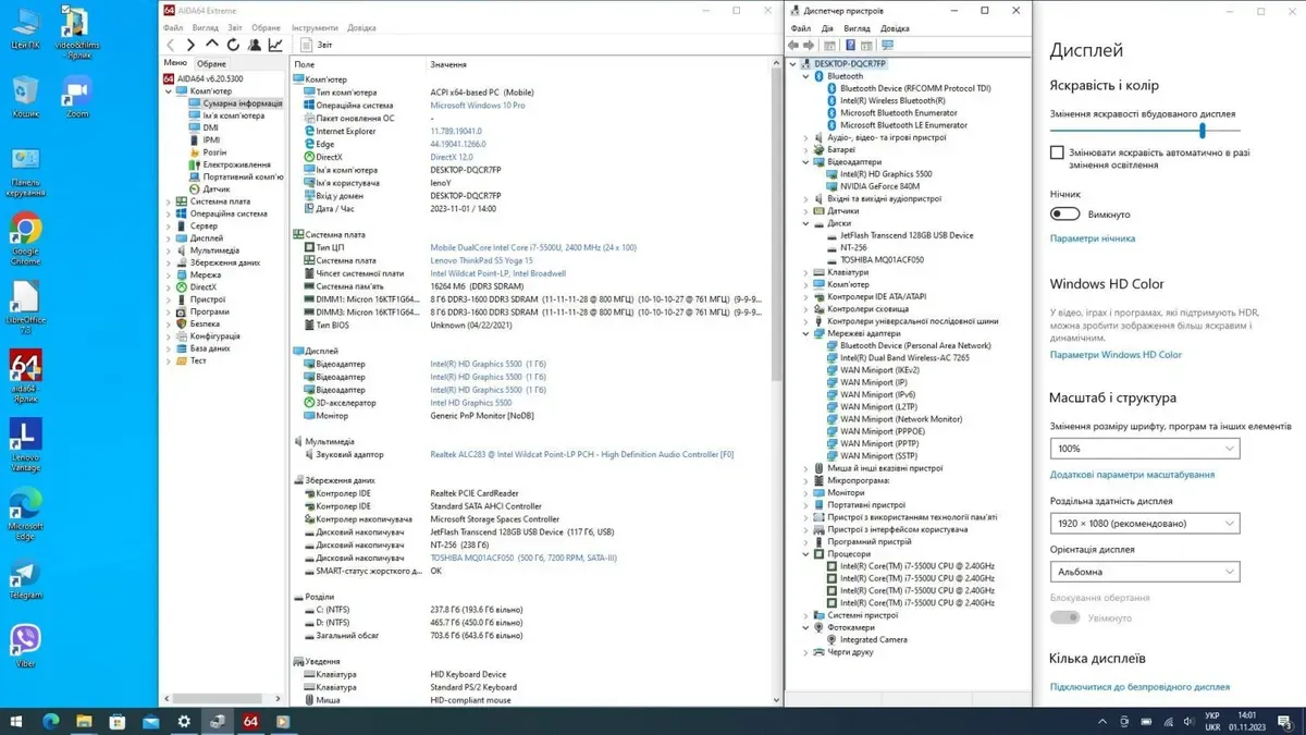 - Процесор: Intel Core i7-5500U (2 (4) ядра по 2.4 - 3.0 GHz), 4 GB Cache