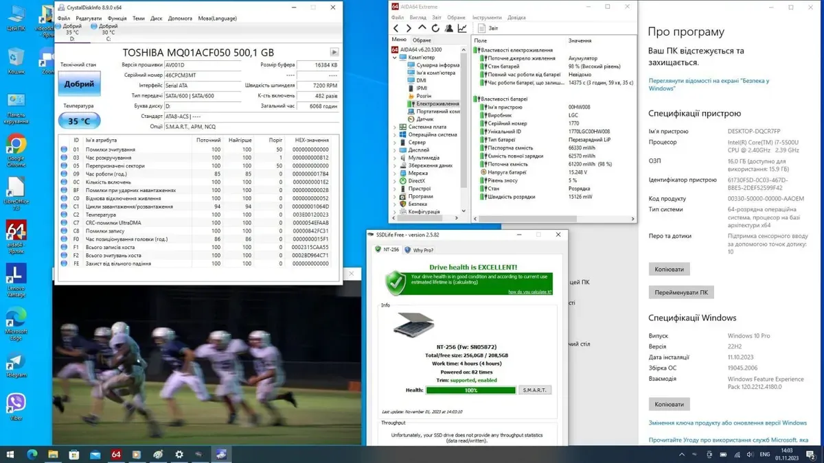 - Постійна пам'ять: 256 GB SSD (нова комплектуюча) + 500 GB HDD