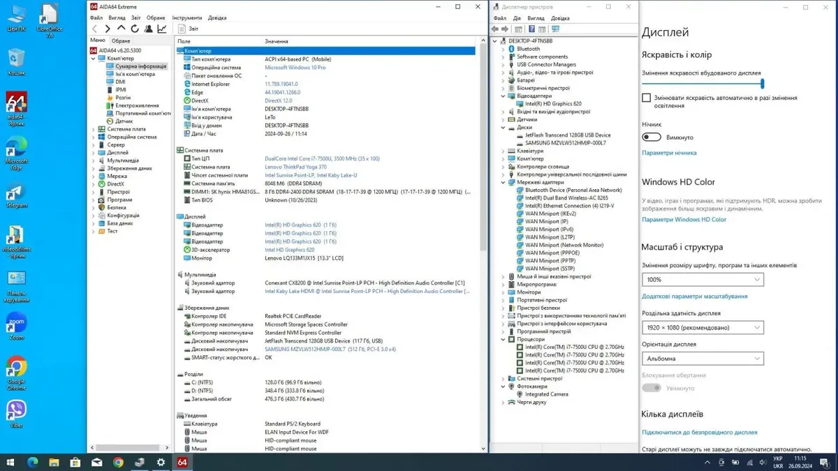 - Графіка: інтегрована Intel HD Graphics 620 (до 1792 MB з ОЗП)