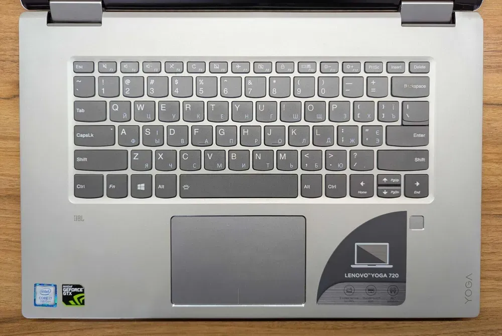 Ноутбук-трансформер Б-клас Lenovo Yoga 720-151KB / 15.6" (3840x2160) IPS Touch / Intel Core i7-7700HQ (4 (8) ядра по 2.8 - 3.8 GHz) / 16 GB DDR4 / 512 GB SSD / nVidia GeForce GTX 1050, 2 GB GDDR5, 128-bit / WebCam / TouchID / Windows 10 б/в