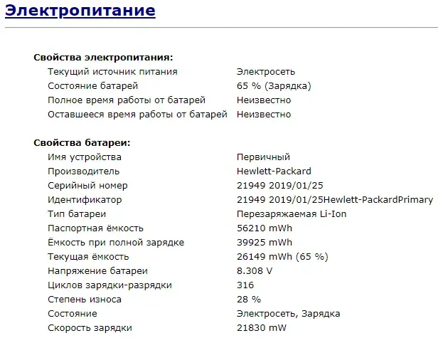 Характеристики батареї:56 WHr. Знос батареї - 12%