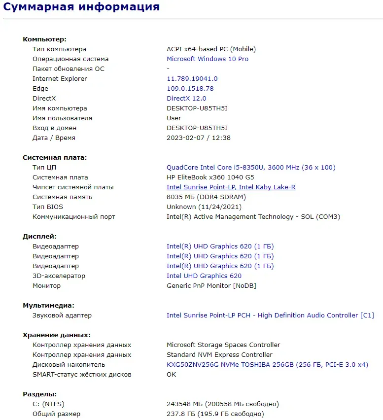 - Графіка: інтегрована Intel UHD Graphics 620 (до 1792 MB з ОЗУ)