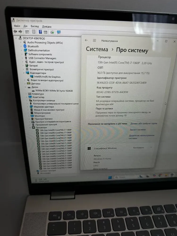 - Процесор: Intel Core i7-1360P (12 (16) ядер по 3.7 - 5.0 GHz), 18 MB Smart Cache