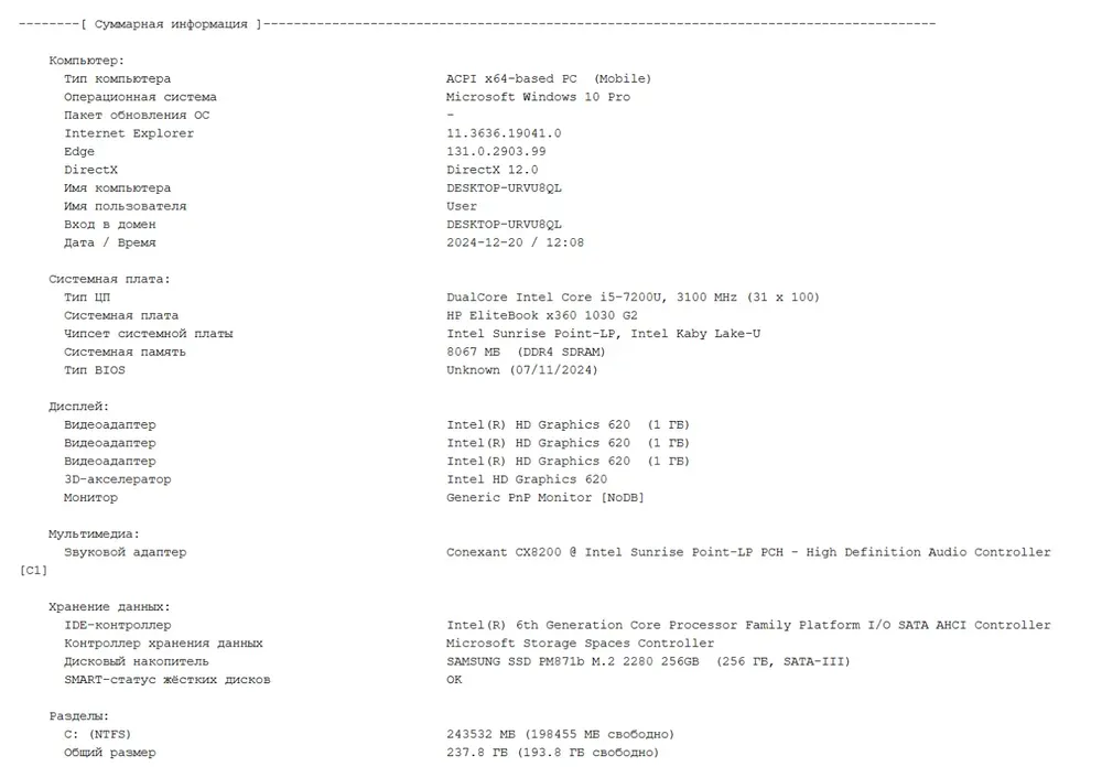 - Постійна пам'ять: 256 GB SSD M.2 NVMe (Samsung SSD PM871b)