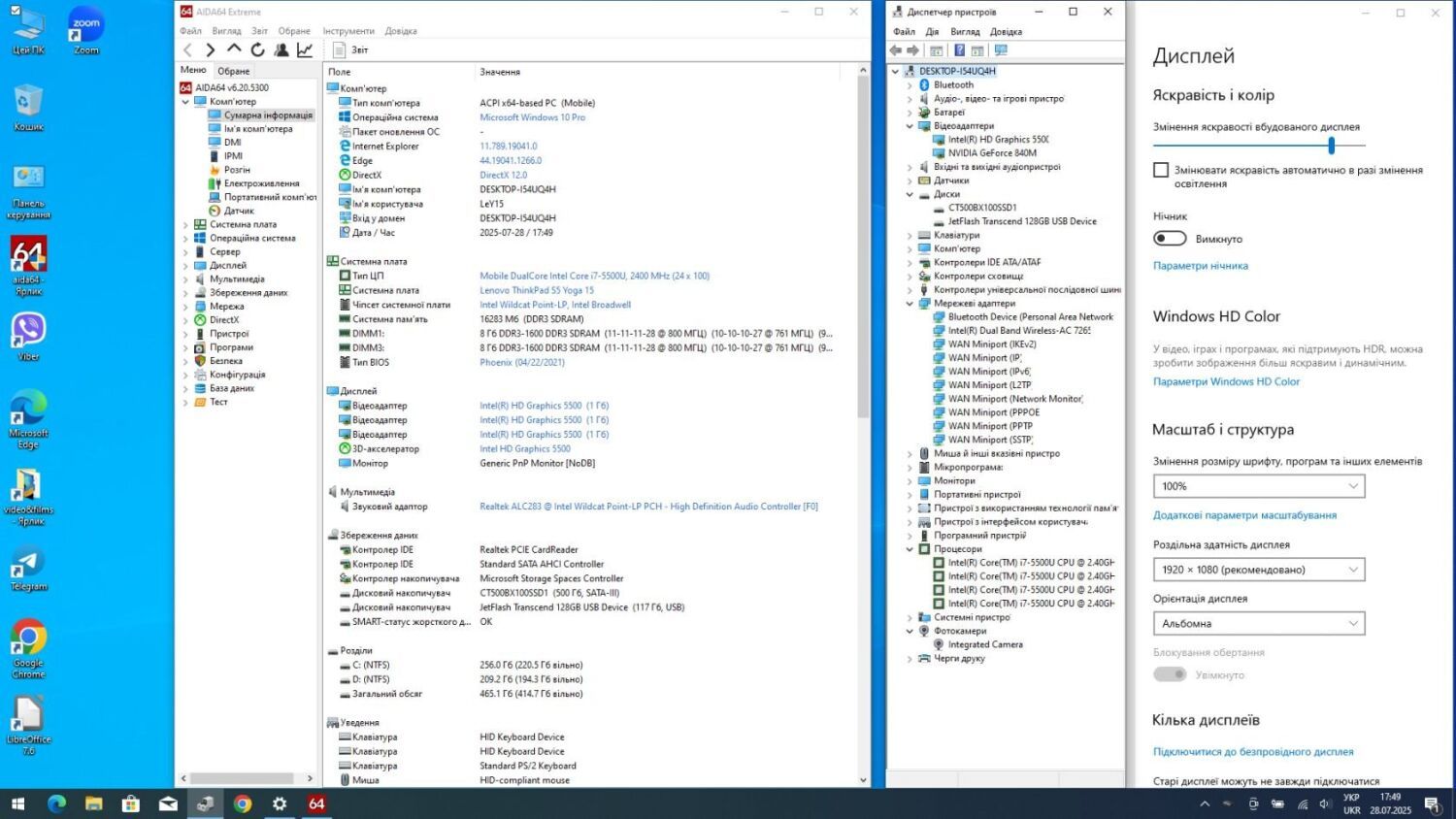 - Процесор: Intel Core i7-5500U (2 (4) ядра по 2,4 - 3,0 ГГц), 4 ГБ кеш-пам'яті