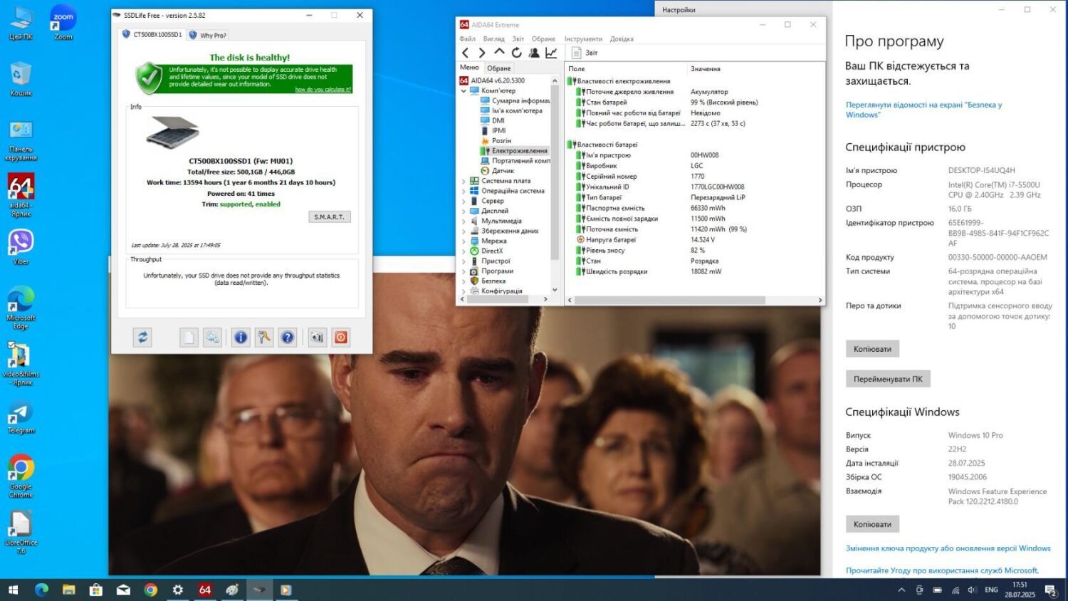 - Комплектація: ноутбук, зарядний пристрій, наклейки на клавіатуру