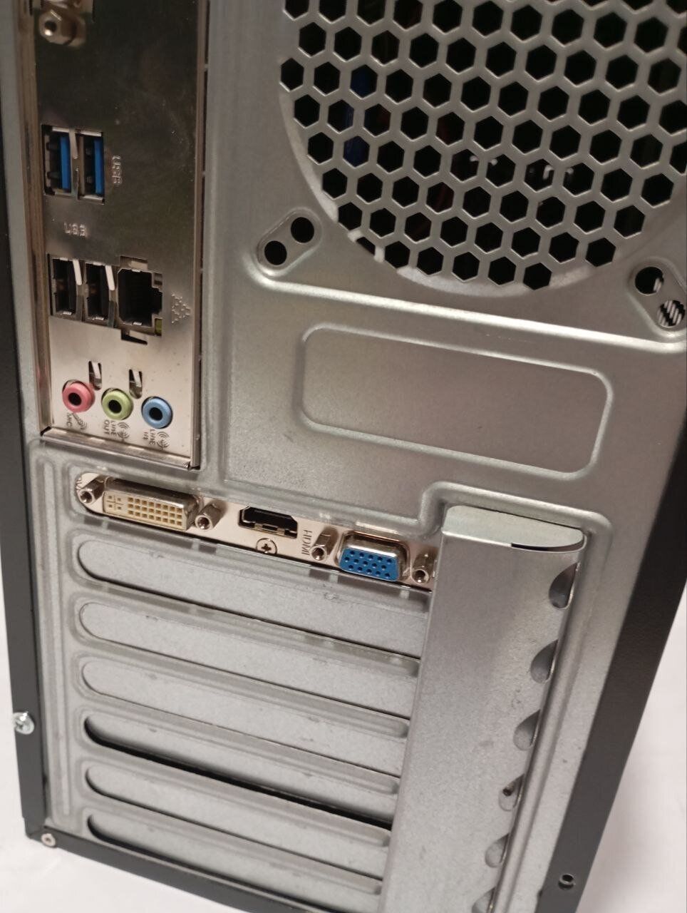- Порти: 2x USB 3.0, 4x USB 2.0, 1x HDMI, 1x DVI, 1x VGA, 5x аудіо, 1x LAN (RJ-45), 2x PS/2