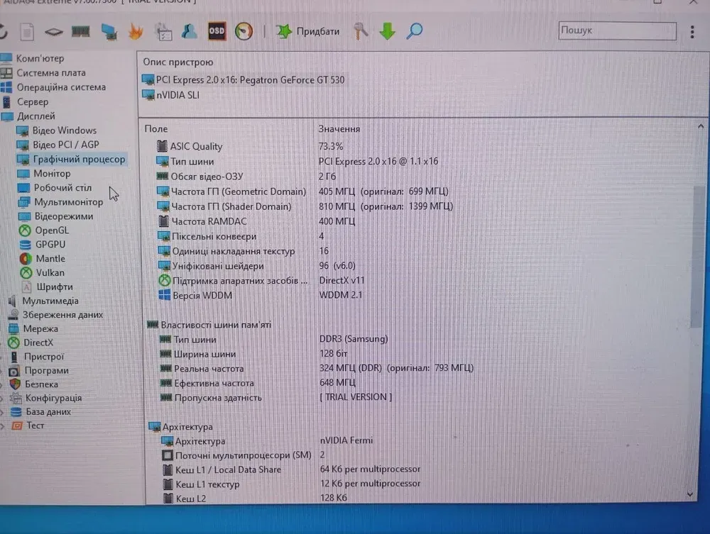 - Графіка: дискретна nVidia GeForce GT 530, 2 GB DDR3, 128-bit
