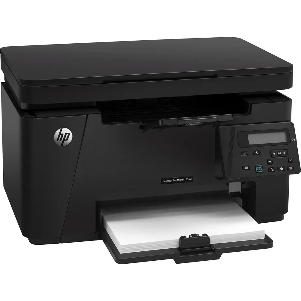Монохромний принтер HP LaserJet MFP M125nw з роздільною здатністю друку 600x600 dpi форматом паперу A4 та швидкістю друку до 20 стор/хв для друку текстових документів та/або фото