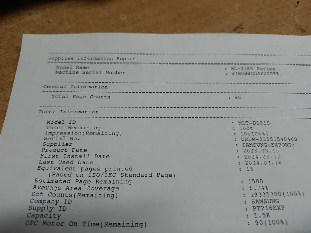 Принтер Samsung ML-2165 з роздільною здатністю друку 1200x1200 dpi, форматом паперу A4 і швидкістю друку до 20 стор./хв для друку текстових документів і/або зображень